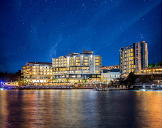 The 5-star Elite World Kuşadası offers modern rooms with sea or city views. The hotel features indoor and outdoor pools, a full-service spa, and elegant restaurants, delivering a refined and comfortable holiday experience by the sea.