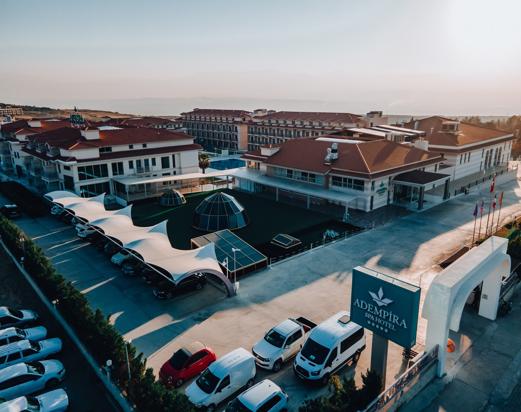 Adempira Thermal & Spa Hotel distinguishes itself with its distinctive architecture, comprehensive spa facilities—including a ladies-only thermal pool—and its prime location just 2 km from Pamukkale's UNESCO-listed travertines, offering guests a unique blend of comfort and wellness.