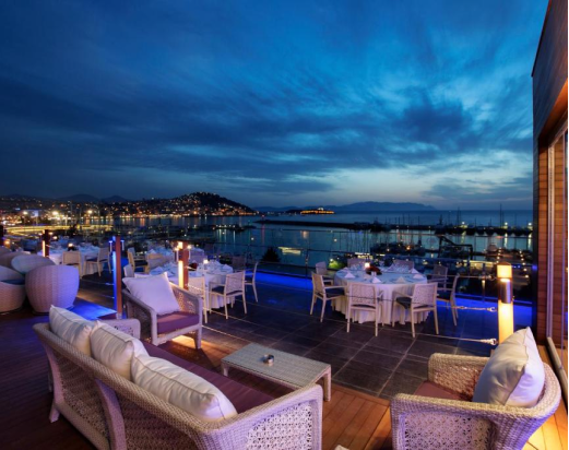 Offers a refined experience with modern architecture and scenic views near Kuşadası Marina.