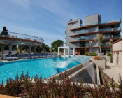 The 5-star Pam Thermal Hotel Clinic & Spa offers modern rooms with balconies, some featuring private saunas and jacuzzis. The hotel features indoor and outdoor thermal pools, a full-service spa, and gourmet restaurants, providing guests with a rejuvenating wellness experience.