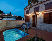 The 5-star Charisma Hotel offers a 60-metre private beach and an infinity pool with panoramic views of the Aegean Sea.