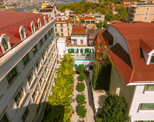 Sura Hagia Sophia Hotel stands out with its Ottoman-inspired architecture, tranquil botanical garden, and prime location just steps from iconic landmarks like Hagia Sophia and the Blue Mosque, offering guests a luxurious and culturally immersive experience in the heart of Istanbul's historic Sultanahmet district.