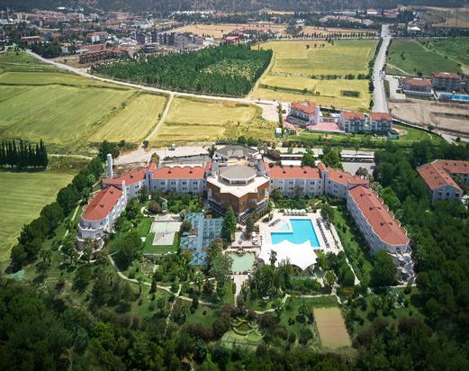 Richmond Pamukkale Thermal distinguishes itself with its expansive pine-shaded gardens and a comprehensive thermal spa complex featuring indoor and outdoor mineral pools, a Turkish bath, and a variety of wellness facilities, all located just 3 km from the UNESCO-listed Pamukkale travertines.